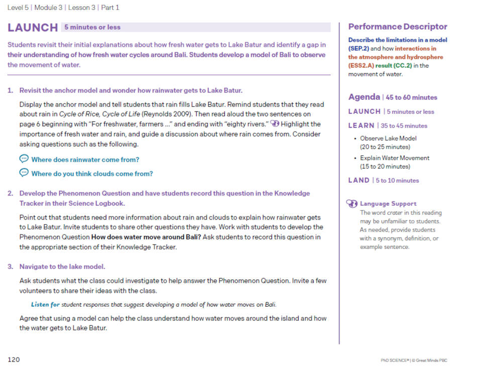 Lesson development emphasizing scientific modeling and progression from observation to explanation. Additional excerpts available upon request.This lesson sample demonstrates how instructional sequences were developed and refined to support student sensemaking through the use of models. The lesson guides students from initial observations to increasingly sophisticated explanations by anchoring discussion in a shared physical model and revisiting prior ideas as new evidence is introduced.Editorial work focused on strengthening the coherence of the lesson sequence, clarifying teacher-facing guidance, and ensuring that scientific ideas were introduced at an appropriate level of complexity. Particular attention was given to how questions, prompts, and explanations supported causal reasoning and helped students connect observable changes in the model to underlying processes in Earth’s systems.